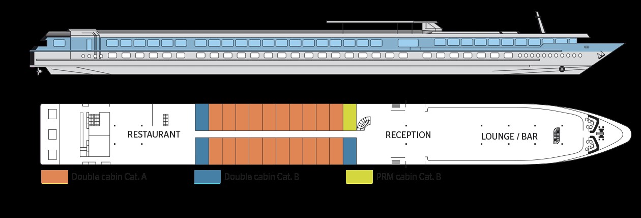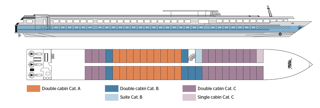 MS Botticelli, ett standard flodfartyg renoverat 2016. Kapacitet för 149 passagerare som upptar 75 hytter på två däck. Alla hytter har fönster, men på övre däck finns större fönster med skjutbar övre sektion.